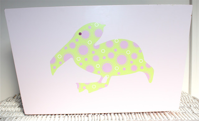 Den triste og kjedelige lekekassen, som egentlig skulle vært malt, ble straks mye spenstigere med wallsticker.